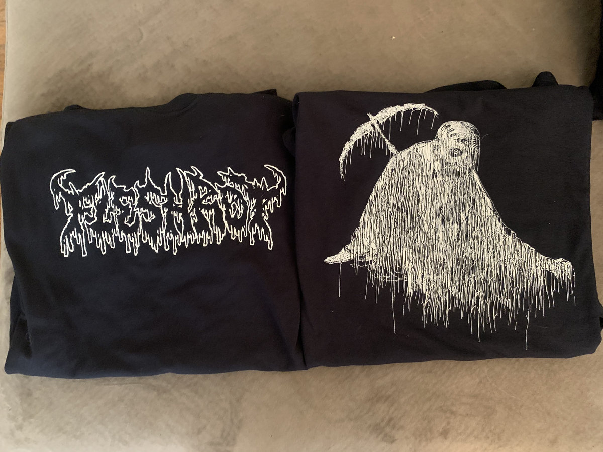 Black logo tee with insane art by Black Crusher Art. Limited sizes. US shipping only. Printed by Inferno Screen Printing