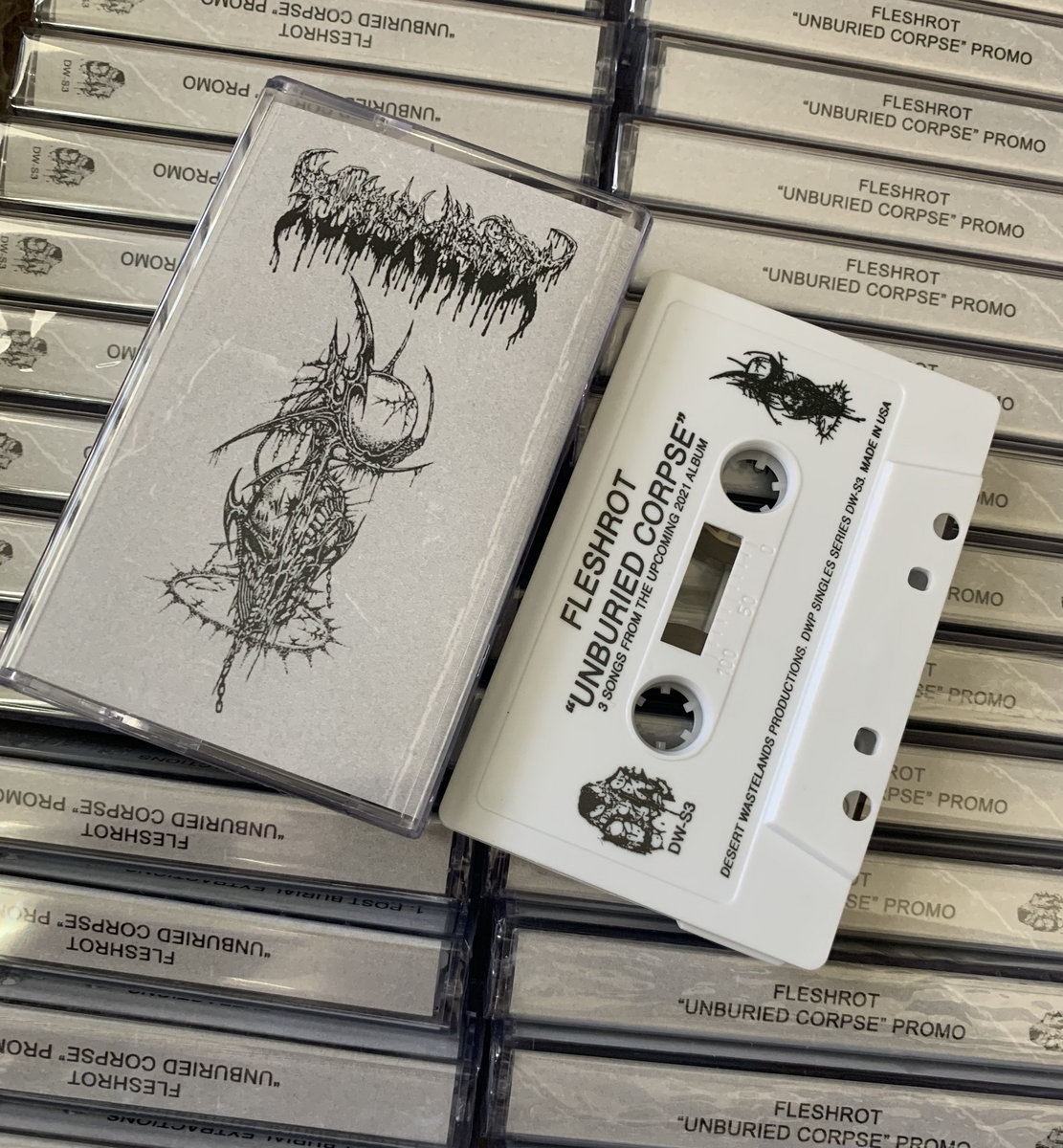 The Desert Wastelands Productions version of our new three song promo tape to prepare you for our debut album, Unburied Corpse. Only 35 Available.