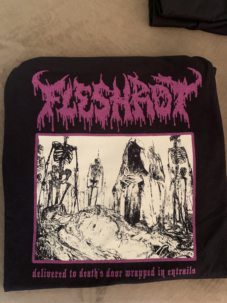Wrapped in Entrails shirt drawn by the great Yuri Kahan (@visionsbeyonddarkness) and printed by Inferno screen printing. Limited sizes available. US shipping only.